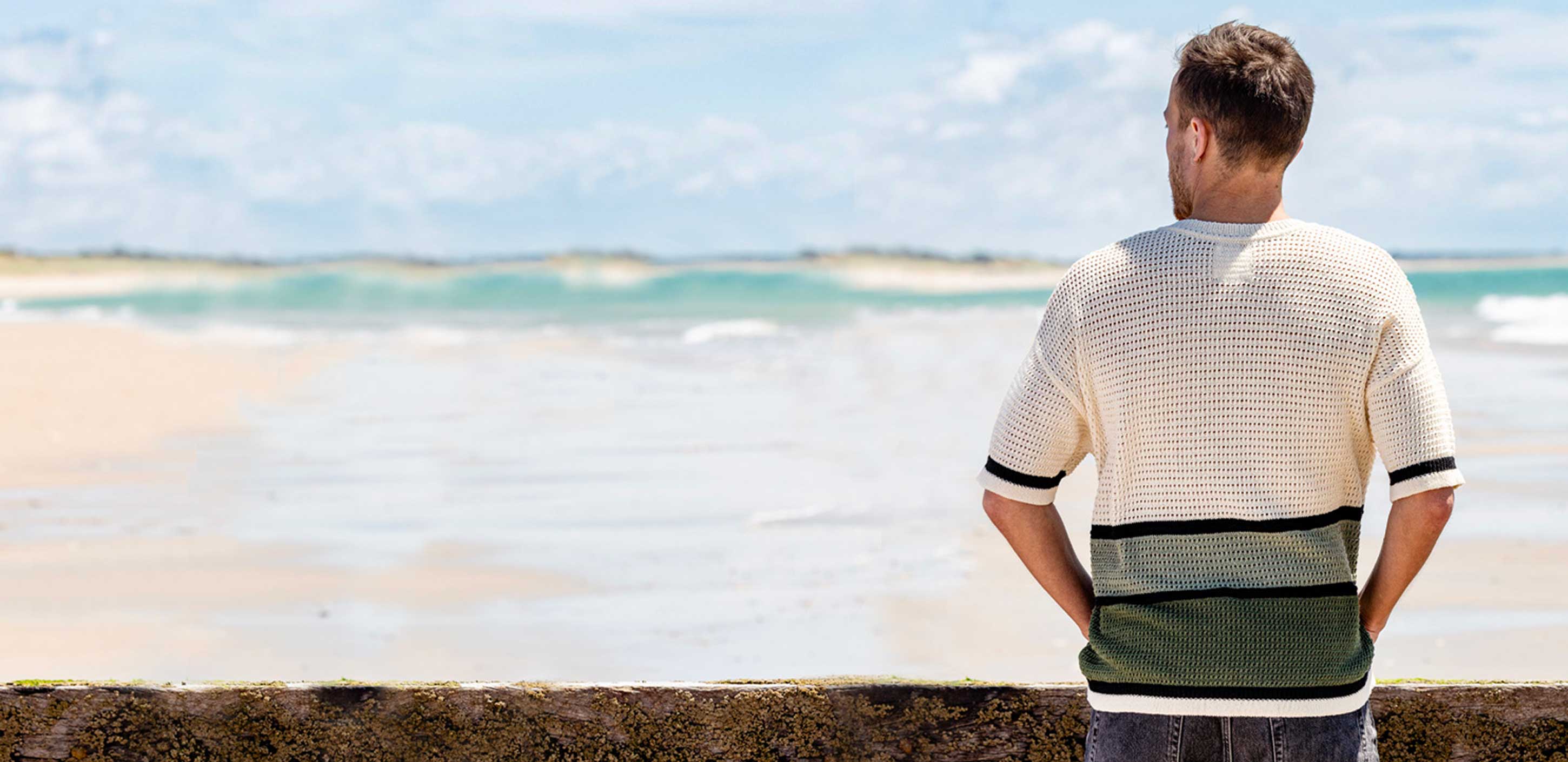pull “NOMADE” écru vert kaki – Coton recyclé