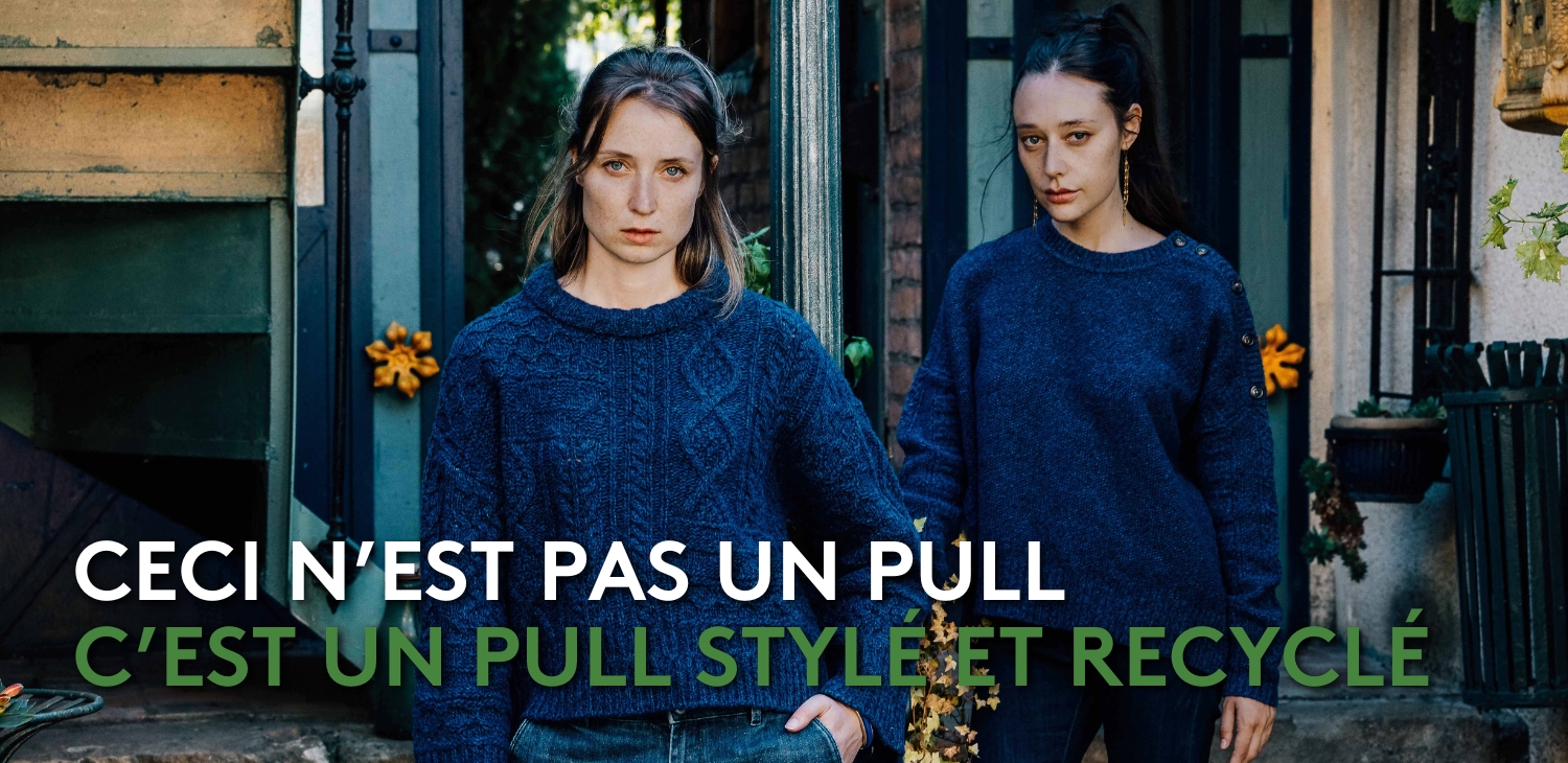 Ces matières recyclées nous inspirent et on à mis tout notre savoir-faire pour les sublimer en imaginant des pulls dont l’originalité est un équilibre entre fantaisie et sobriété entre la mode et nos modes de vie.