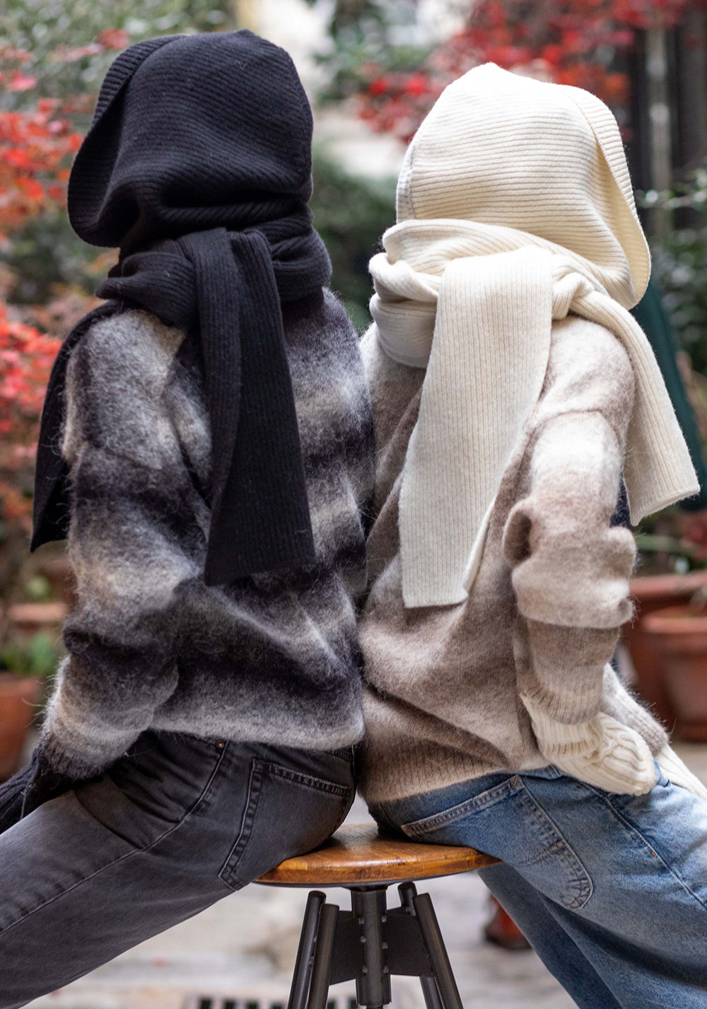 " LES INSÉPARABLES ", Un 2 en 1, une écharpe mais aussi une capuche…
