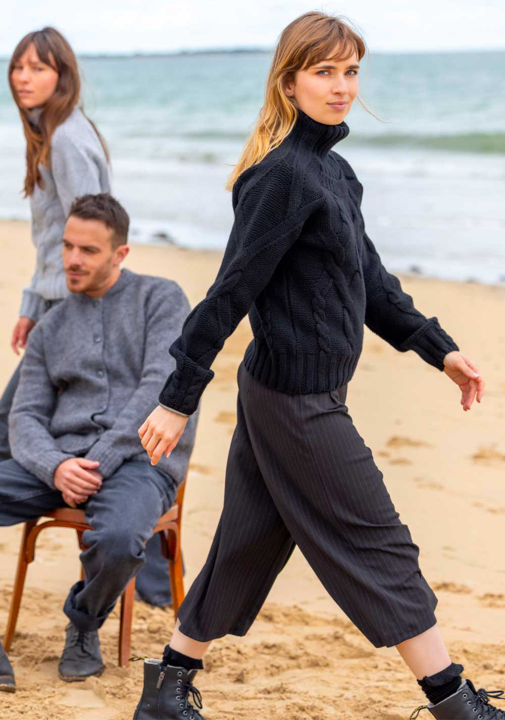 pull “DEFERLANTE” noir – Laine extra fine recyclée