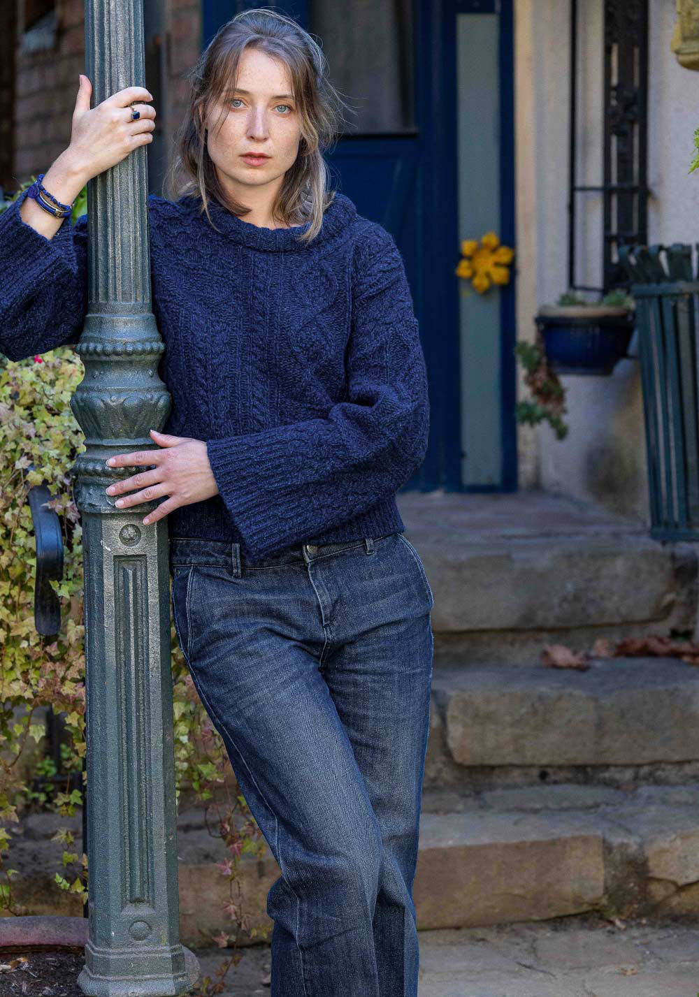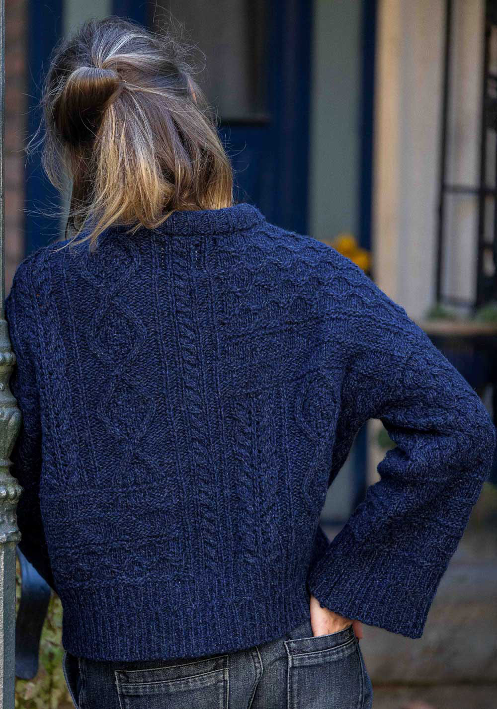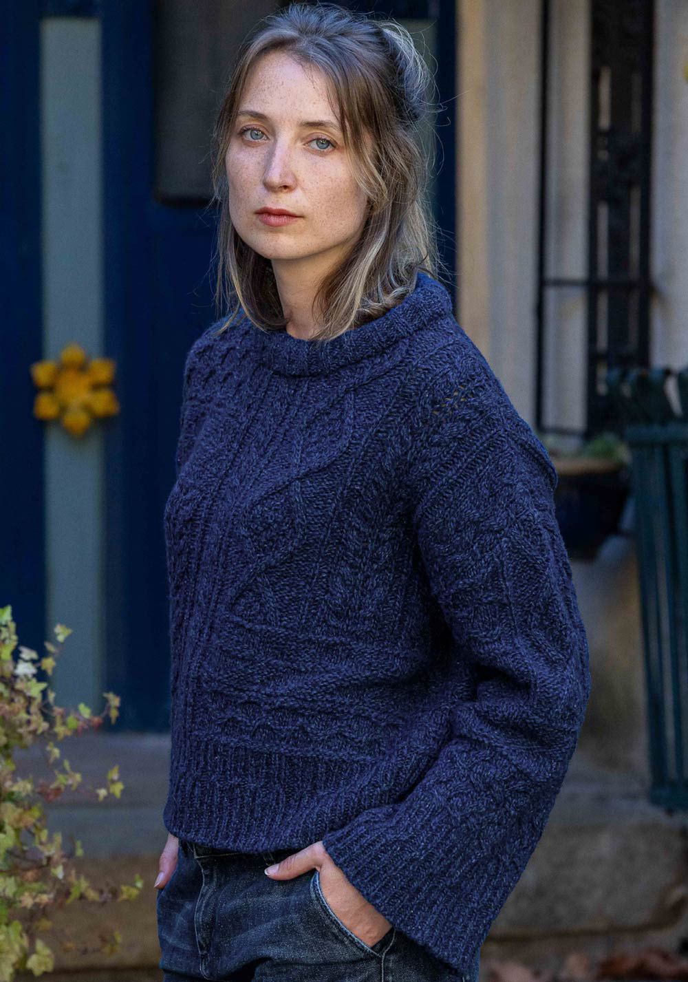 " PERGAME ", c’est la version déstructurée du pull irlandais… Sa forme, articulée autour de multiples torsades et de points fantaisies offre un tombé parfaitement équilibré entre longueur maîtrisée et manches pagodes, soulignées par leurs côtes 1/1 twistées.