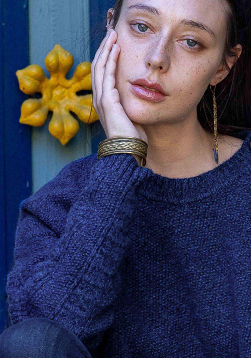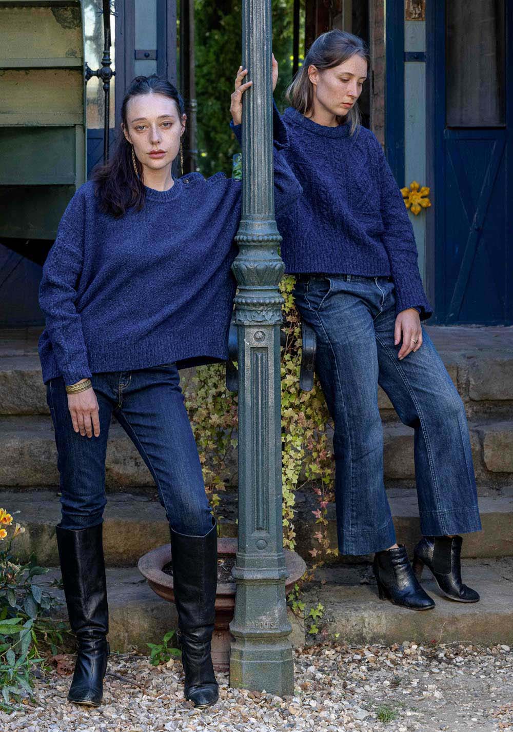 Le QUAI BRANLY mouliné marine/indigo/bleu royal se porte soit avec des pièces claires pour un look « bord de mer », soit avec des pièces sombres jusqu’au noir pour une silhouette plus urbaine.