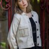 Grâce à sa coupe polyvalente, elle se porte aussi bien ouverte en sur-chemise qu’ajustée en veste structurée.
