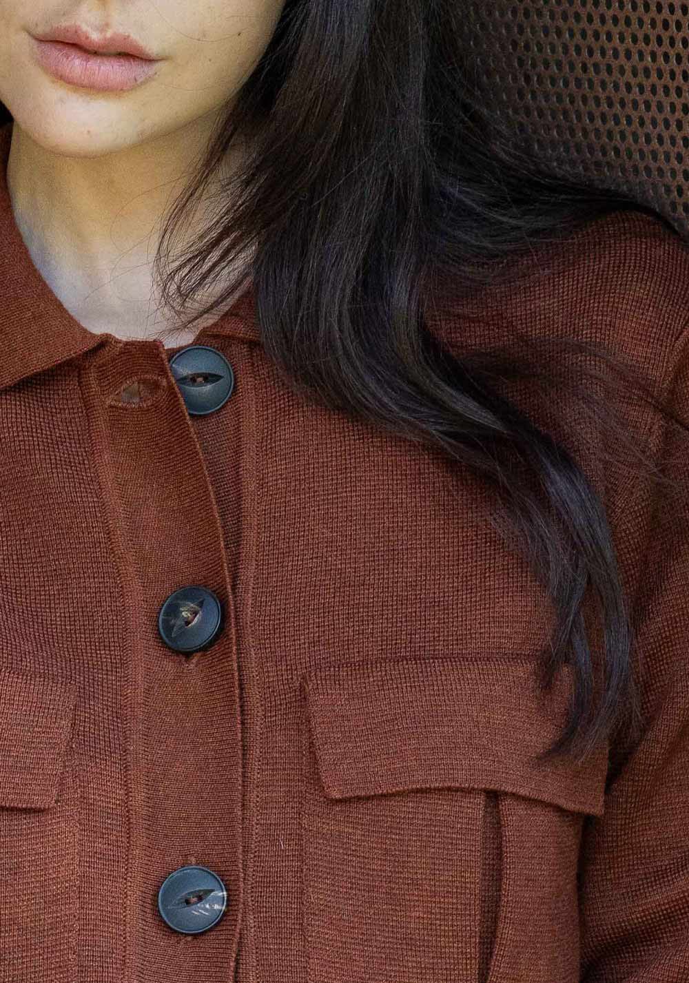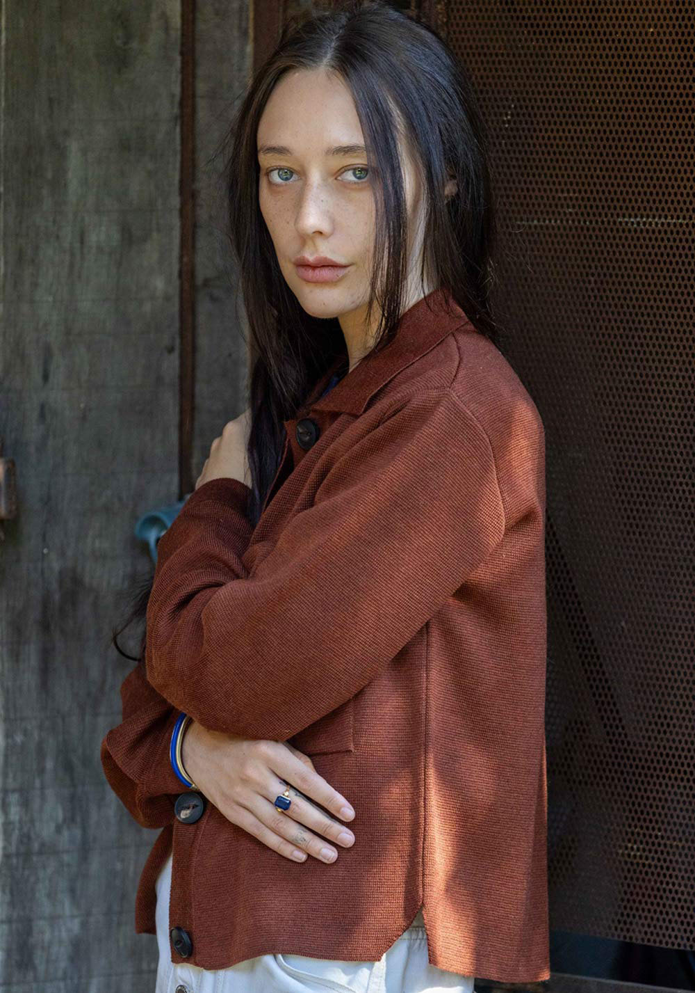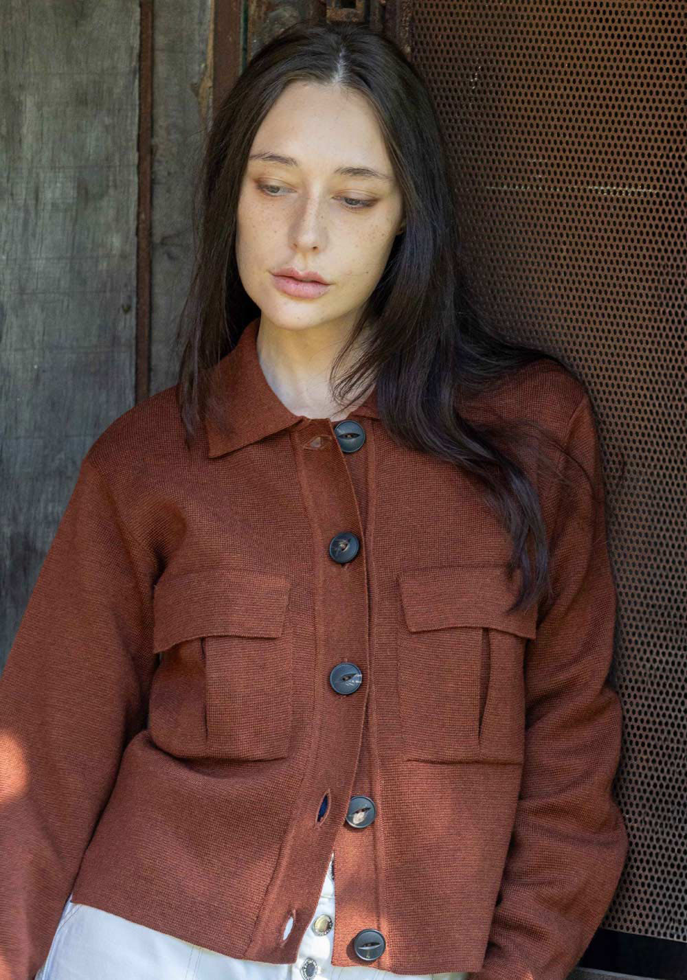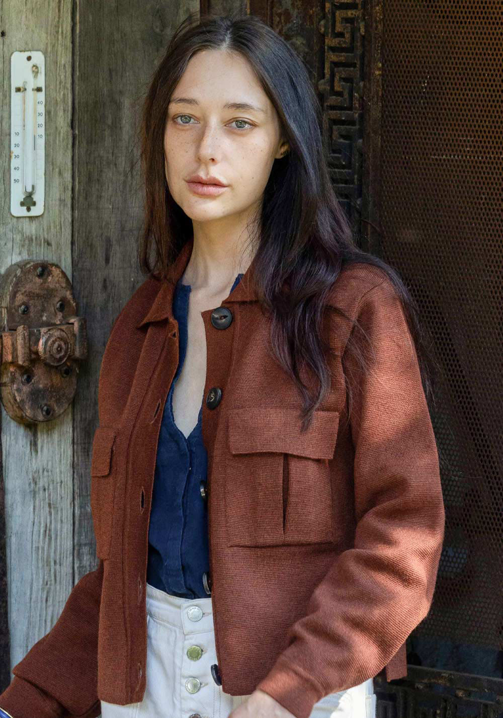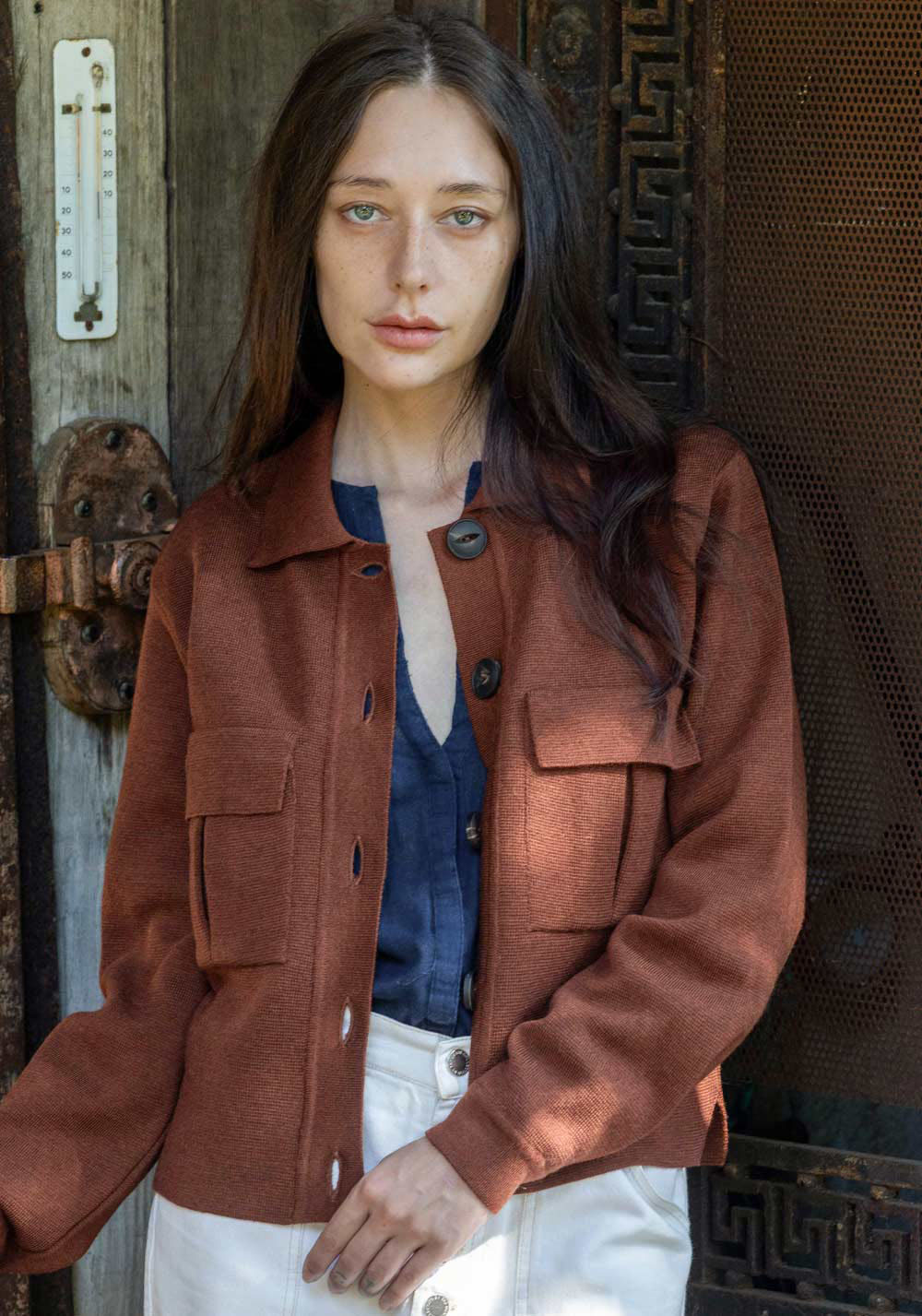 En marron noisette, portez-la avec un pantalon cargo fluide kaki ou une jupe midi plissée pour un style chaleureux et actuel.