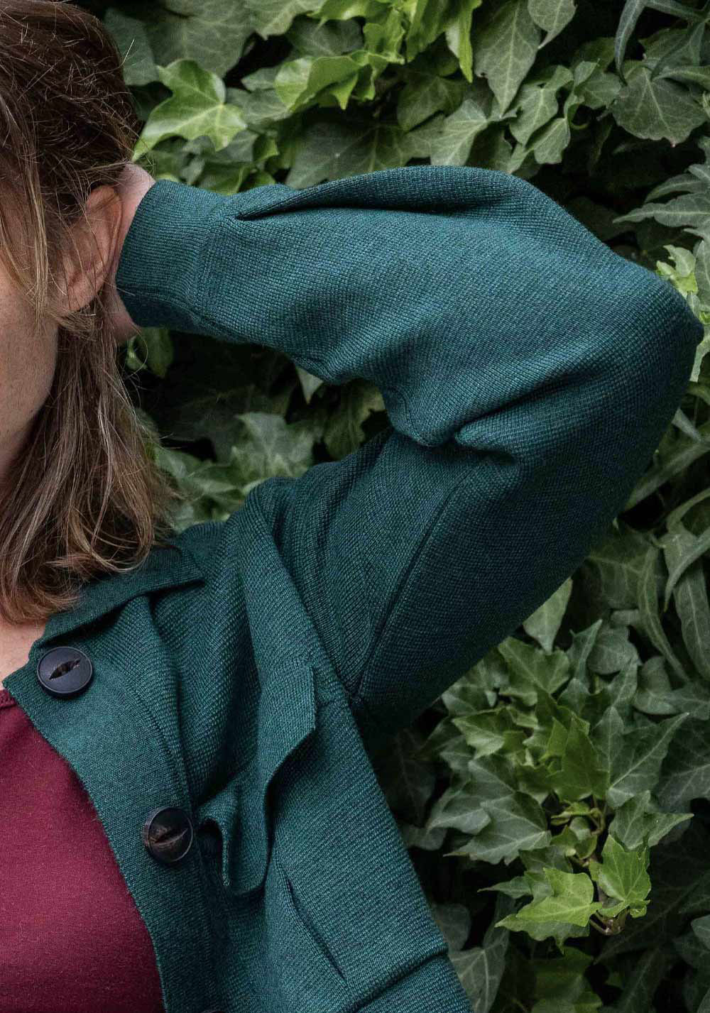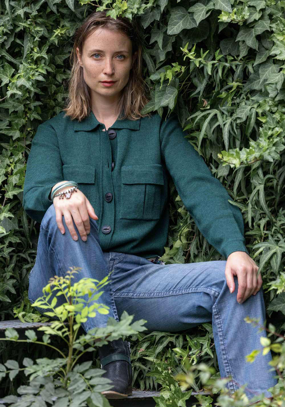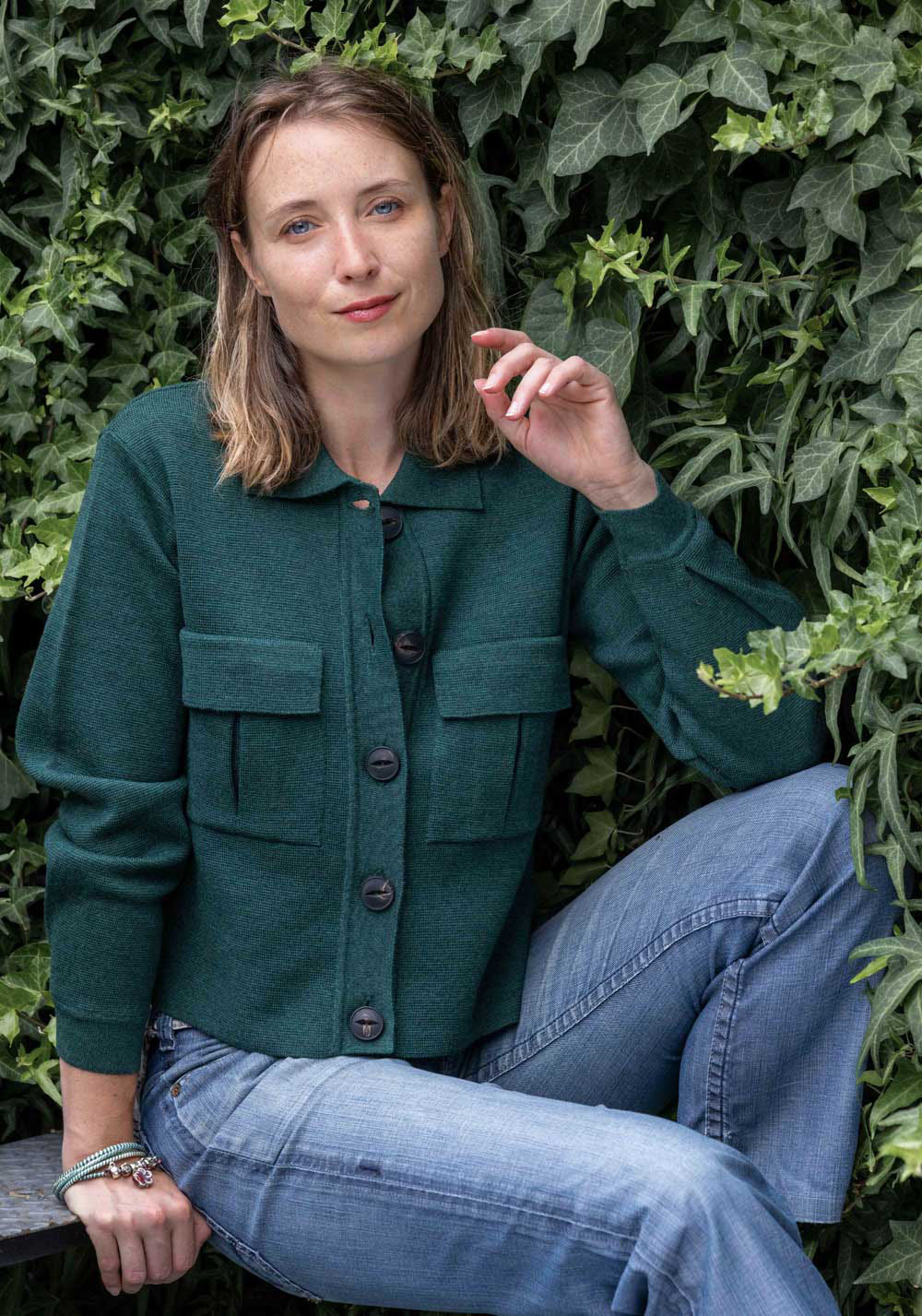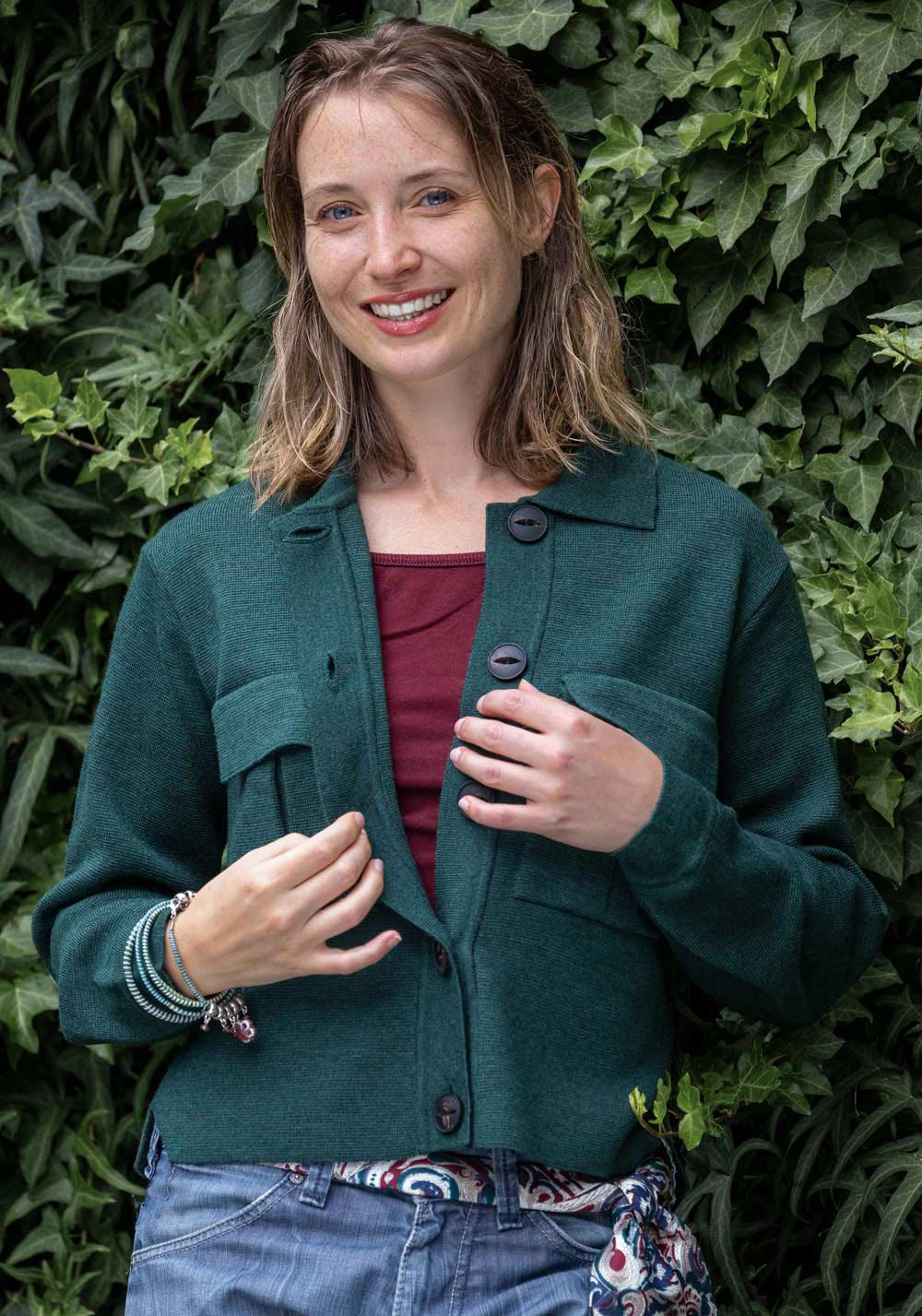 En vert sapin, associez-la à un jean droit taille-haute pour une allure naturelle et élégante.