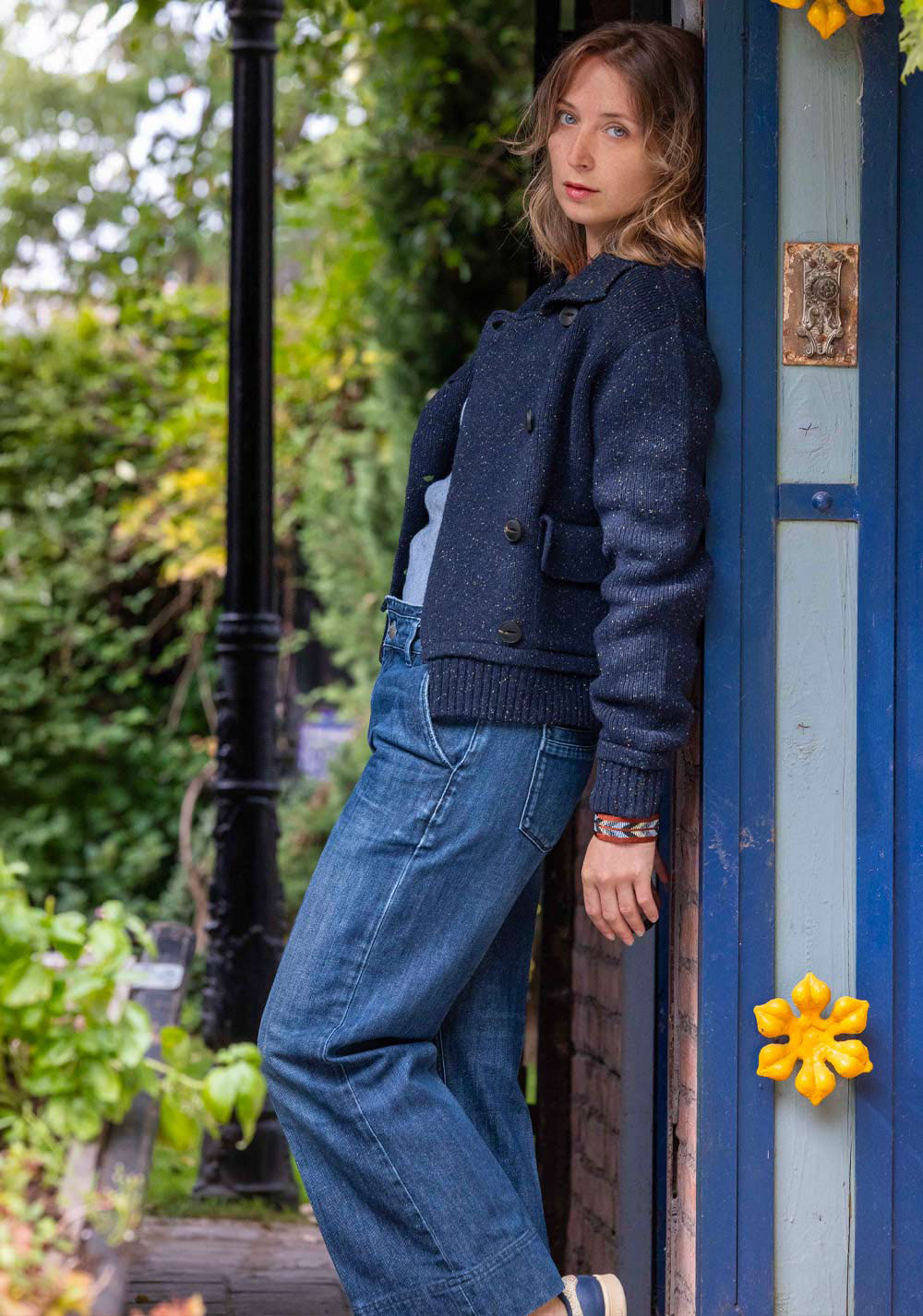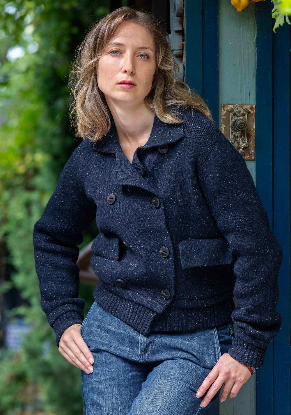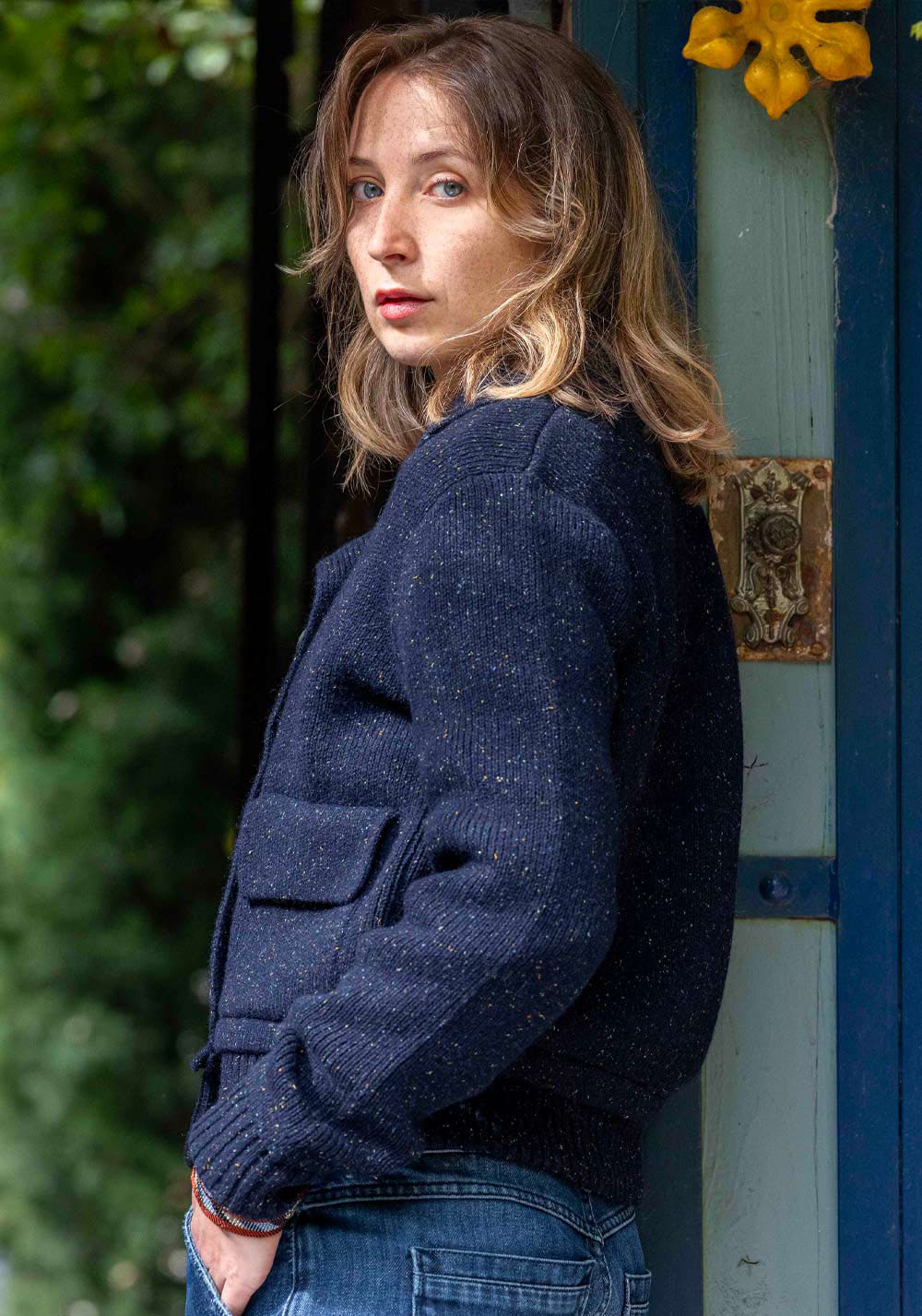 Inspiré du caban breton, la veste PETIT PALAIS est tricoté en maille Milano dans une laine rehaussée de bourrettes de soies colorées, le tout 100% recyclé.